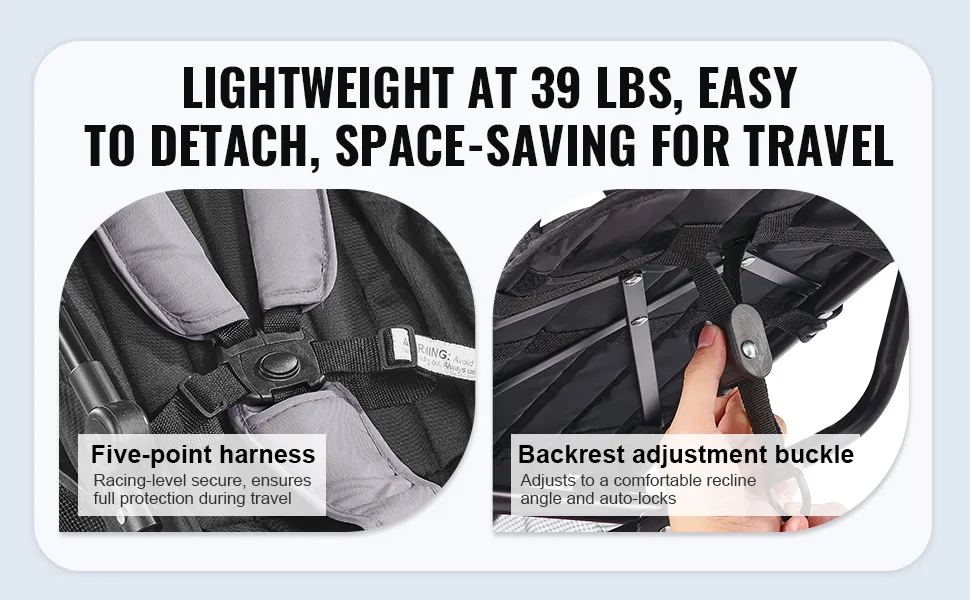 Każdy krok w podróży Twojego dziecka jest kluczowy dla bezpieczeństwa! Ten wózek jest wyposażony w 5-punktowe pasy bezpieczeństwa, które zapewniają bezpieczeństwo podczas wyścigów, gwarantując Twojemu dziecku pełne bezpieczeństwo. Klamra z regulacją oparcia blokuje się automatycznie.