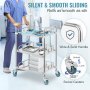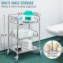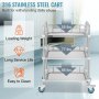 Wózek laboratoryjny wykonany jest z grubej stali nierdzewnej i ma nośność 100 kg. Ten wózek laboratoryjny jest wyposażony w wiele półek, które optymalizują rozwiązania w zakresie przechowywania. Cztery kółka skrętne (2 z blokadą) zapewniają łatwą i płynną mobilność. Wózek nadaje się do laboratoriów, klinik, SPA, salonów kosmetycznych itp.