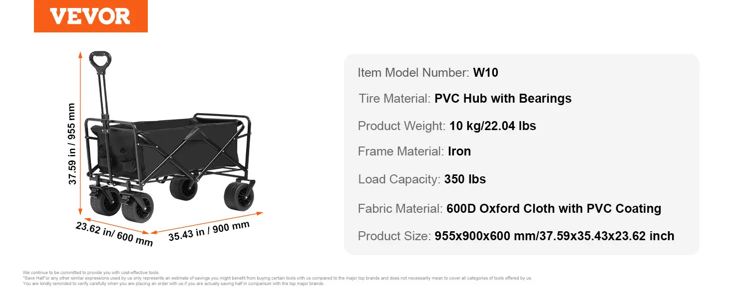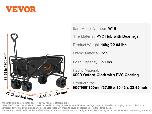 Wózek VEVOR ma koła terenowe. Dzięki nim poruszanie się po piaszczystych plażach lub nierównych ścieżkach jest łatwe. Szerokie koła zapewniają stabilność i zapobiegają zapadaniu się. Obracają się płynnie we wszystkich kierunkach. Dzięki temu kierowanie wózkiem jest bezwysiłkowe. Ponadto możesz zaufać temu wózkowi, że poradzi sobie z różnymi rodzajami terenu. Spraw, aby Twoje przygody na świeżym powietrzu były płynne i bezproblemowe.