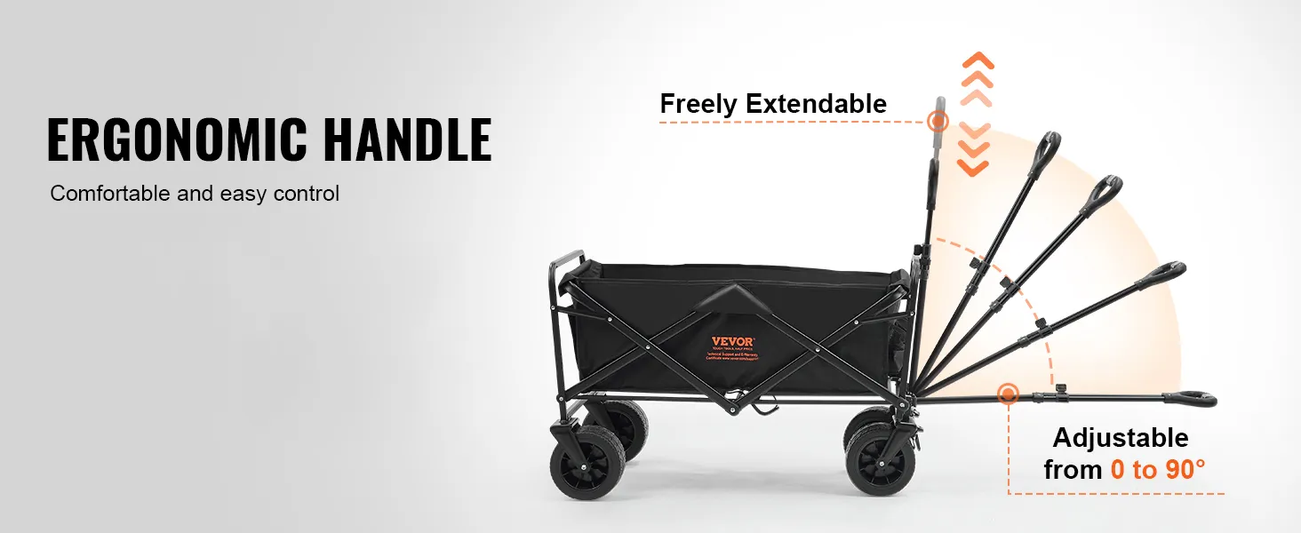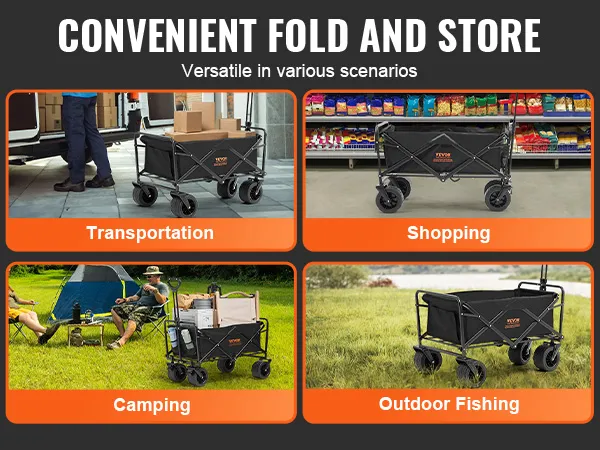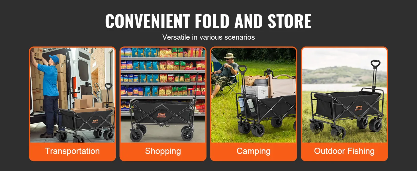 Składany wózek VEVOR został stworzony dla wygody. Łatwo się składa, co umożliwia szybkie przechowywanie i transport. Kompaktowa konstrukcja pozwala na umieszczenie go w bagażniku samochodu lub w małych przestrzeniach. Ta funkcja jest idealna dla tych, którzy muszą oszczędzać miejsce. Możesz łatwo używać wózka w podróży. Ze względu na możliwość szybkiego złożenia nie będziesz potrzebować żadnych narzędzi, aby go rozłożyć lub złożyć. Przeznaczony do spontanicznych wycieczek i wyjść, ten składany wózek ułatwia Twoje przygody.