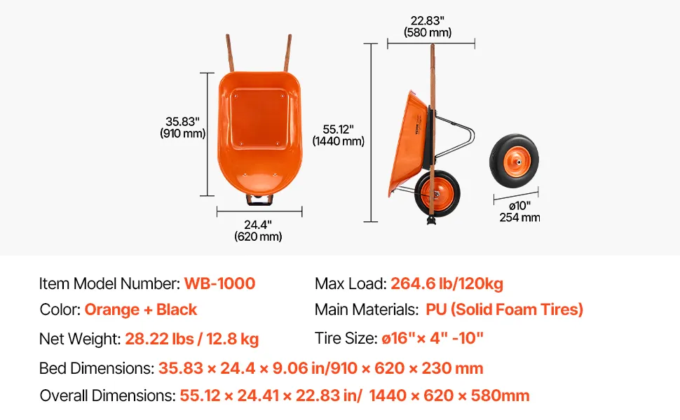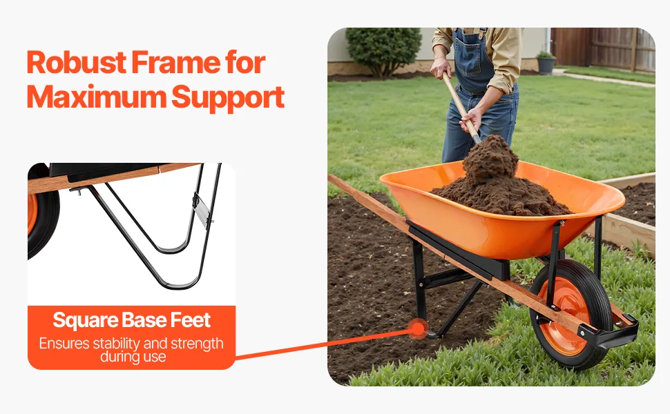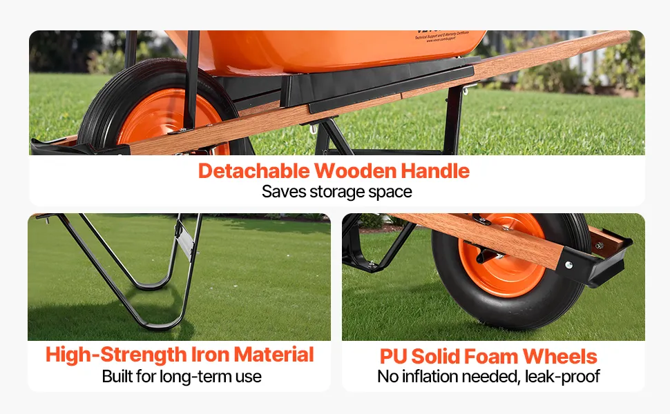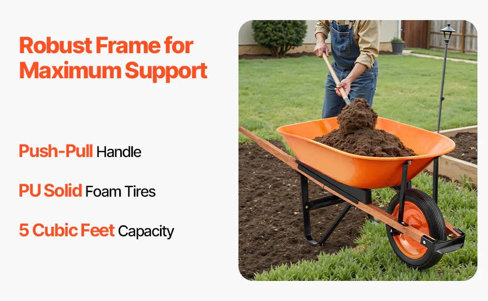Pomocnik w ogrodzie: Nasz wózek ogrodowy ma ergonomiczną konstrukcję i wyściełaną rączkę, która ułatwia prowadzenie i utrzymanie równowagi. 16-calowe opony z pełnej pianki z głębokim bieżnikiem zapewniają doskonałą przyczepność na wszystkich nawierzchniach, dzięki czemu idealnie nadaje się do użytku w ogrodach, na podwórkach, w gospodarstwach rolnych i magazynach.