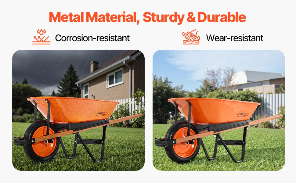 Wózek taczkowy VEVOR, ładowność 5 stóp sześciennych i udźwig 330 funtów, jednokołowa wywrotka ogrodowa, wózek ogrodowy z metalową rączką i kołami o szerokości 16 cali, łatwy w załadunku, wielofunkcyjny wózek ogrodowy i wózek do gospodarstwa trawnikowego