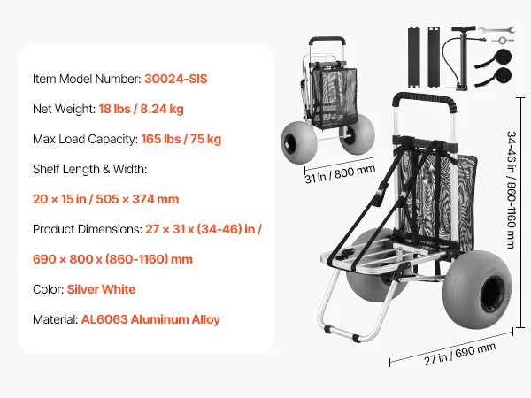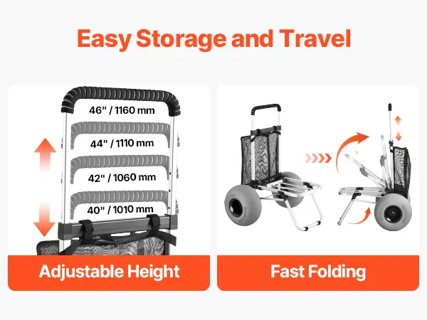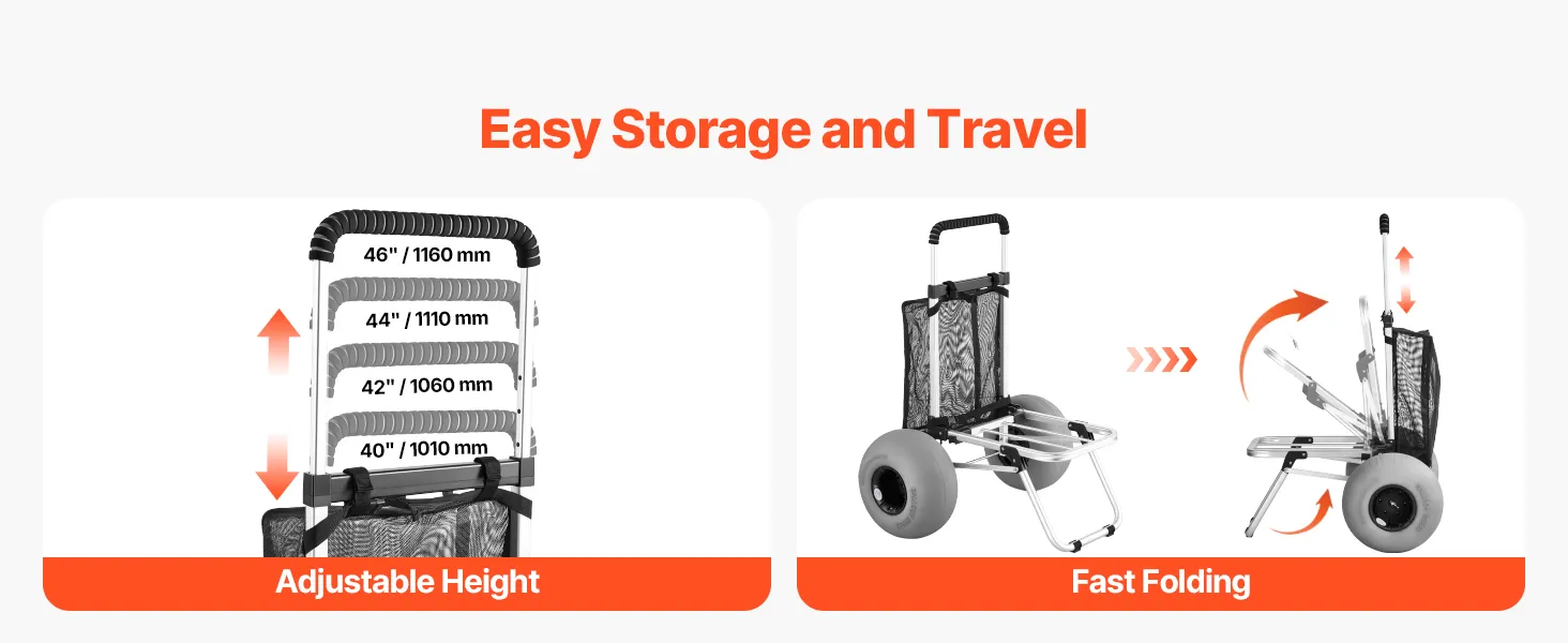 • Wszechstronne zastosowanie: Wózek plażowy idealnie nadaje się na wakacje na plaży, kempingi, wyprawy wędkarskie, imprezy sportowe i pikniki. Nadaje się do szerokiej gamy zadań transportowych.