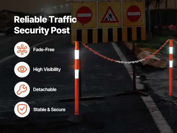 Wszechstronne zastosowania: Idealne na place budowy dróg, wjazdy do garaży, parkingi komercyjne i strefy kontroli tłumu. Łącząc znaczniki za pomocą łańcuchów lub ustawiając je indywidualnie, można szybko wyznaczyć strefę bezpieczeństwa lub torowisko.