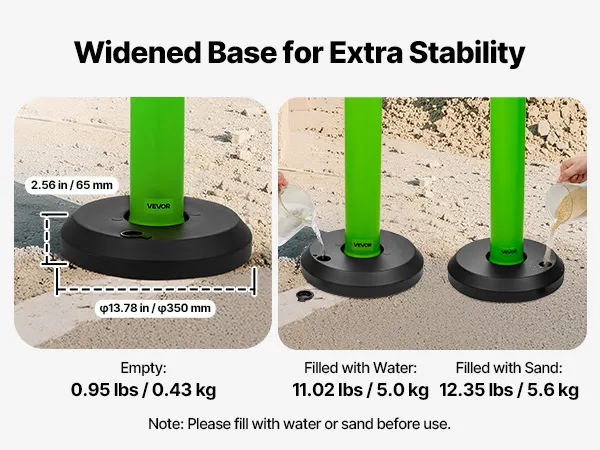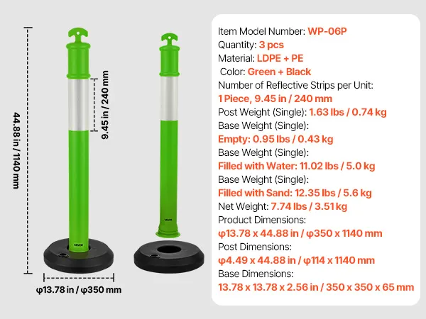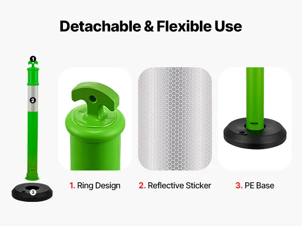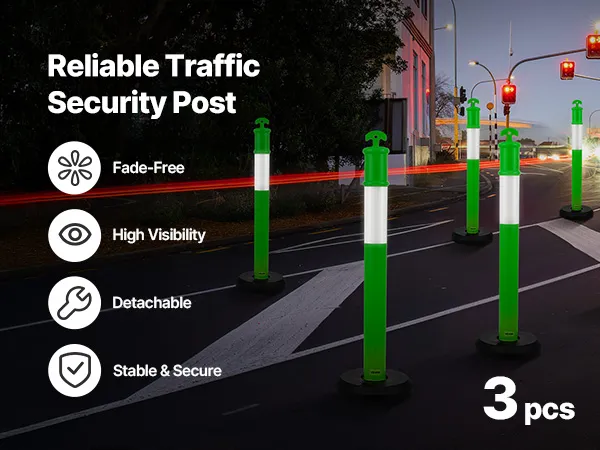 Słupki ograniczające ruch VEVOR, zestaw 3 szt. (114 cm) z wypełnianą podstawą i paskami odblaskowymi, słupki ostrzegawcze na place budowy, parkingi, słupki odgradzające ruch, zielone