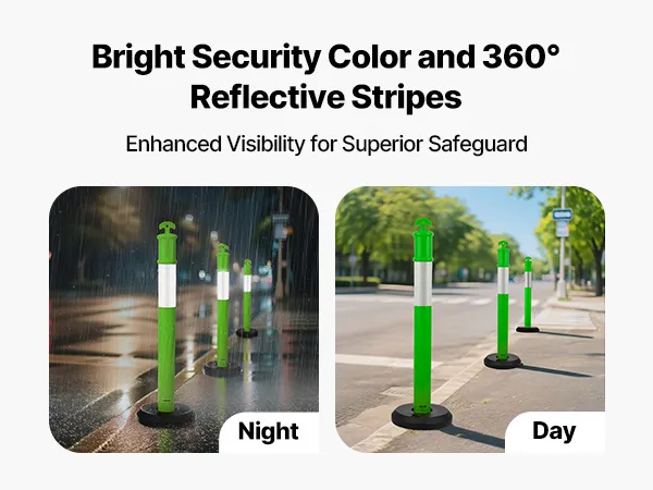 Wysoka widoczność: Paski odblaskowe o wysokiej intensywności 360° zapewniają doskonałą widoczność nawet w warunkach słabego oświetlenia, mgły lub silnego oślepienia. Piesi, pojazdy i pracownicy budowlani mogą szybko rozpoznać słupki drogowe, co zwiększa bezpieczeństwo podczas prac lub objazdów.
