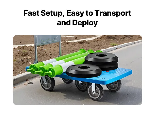 Wygoda bezproblemowa: Dzięki kompaktowej konstrukcji słupek i podstawę bariery można szybko zmontować, tworząc niezawodne rozwiązanie do zarządzania ruchem na ulicach komercyjnych, stadionach sportowych i obiektach wystawowych.