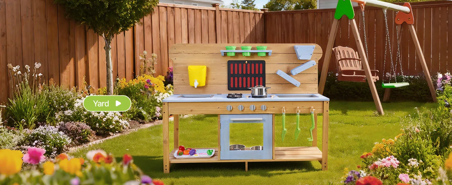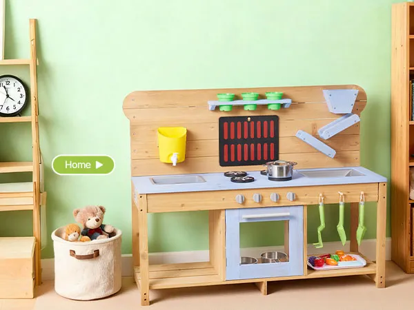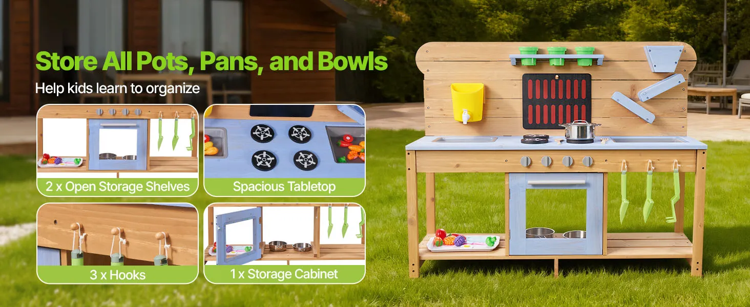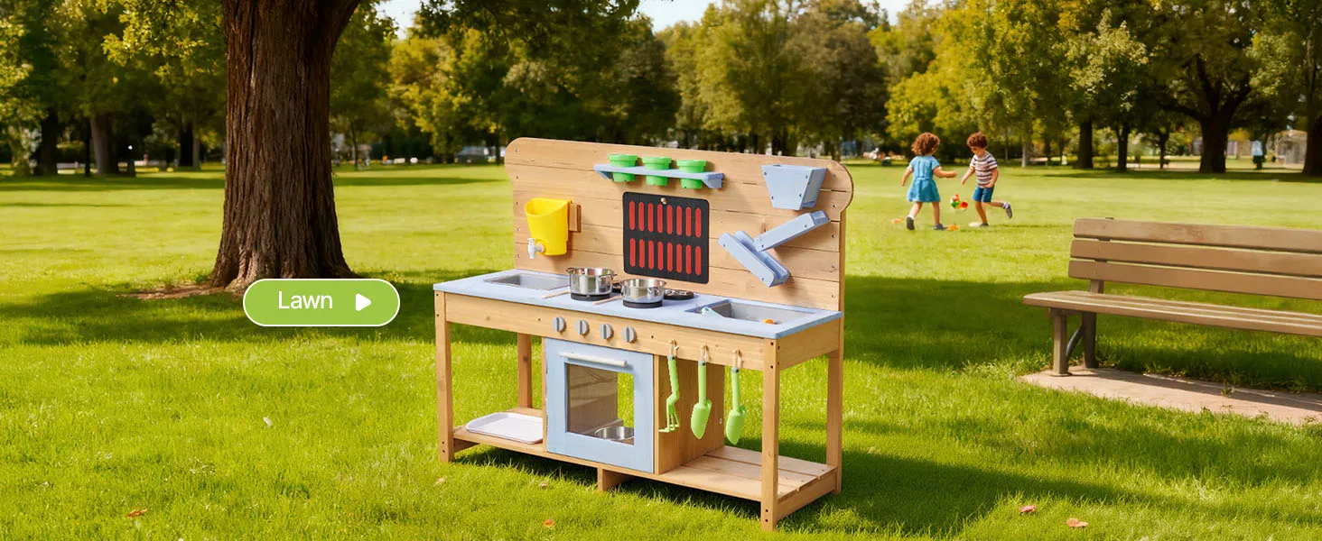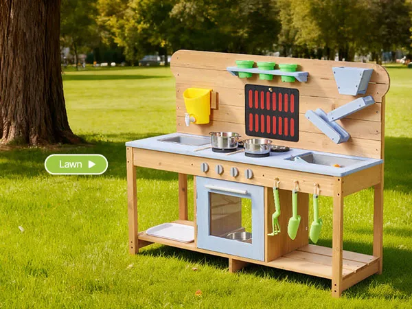 Ta błotna kuchnia dla maluchów została zaprojektowana z myślą o przygodach na świeżym powietrzu, wśród błota, wody i natury. Dzieci mogą gotować w ziemi jak prawdziwi szefowie kuchni!