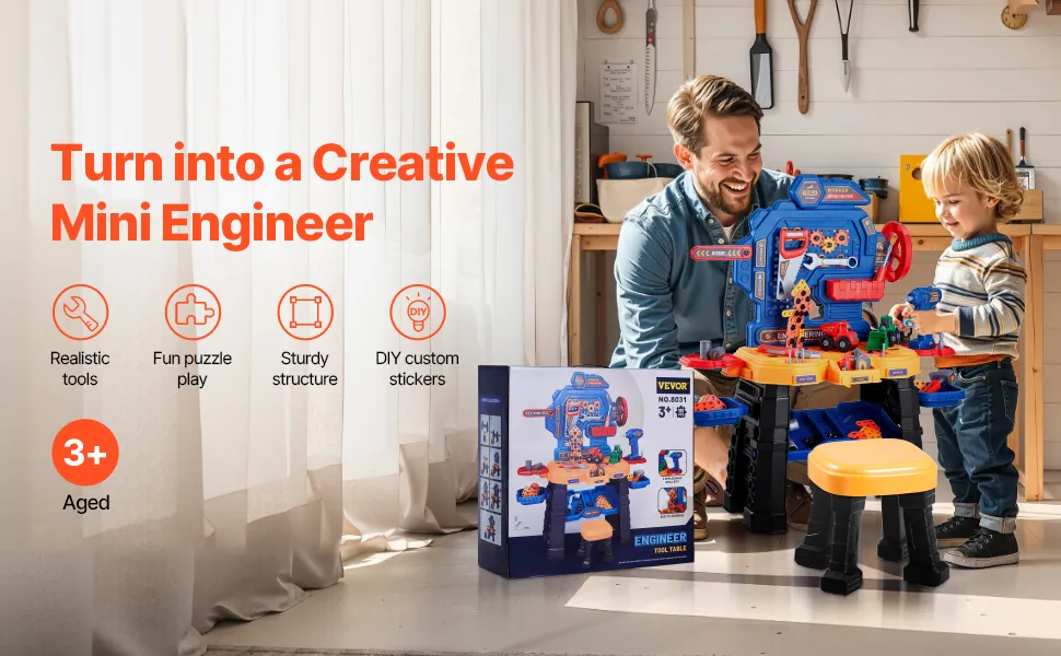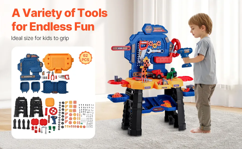 Szukasz idealnego prezentu? Ta kolorowa, zabawkowa zabawka warsztatowa pobudza wyobraźnię, umiejętności manualne i rozwój poznawczy — doskonale nadaje się do spędzania czasu z dzieckiem, a jednocześnie pielęgnowania jego kreatywności!