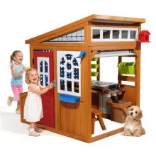 VEVOR Drewniany domek dla dzieci, domek ogrodowy dla dzieci od 2 lat, domek do zabawy w ogrodzie, domek z drewna cedrowego w stylu rustykalnym z drzwiami, oknem, uchwytem na doniczkę, grillem, kuchenką i zlewem