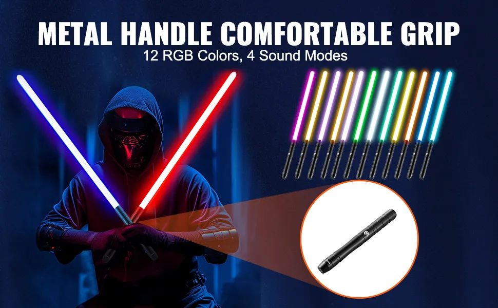 Łatwe przełączanie trybów: Ten miecz świetlny oferuje szeroki zakres funkcji i prostą obsługę, w tym sterowanie ruchem, umożliwiające łatwe przełączanie między efektami dźwiękowymi i trybami świetlnymi. Posiada również trzy poziomy głośności dla różnych scenariuszy oraz tryb cichy, aby nie przeszkadzać innym.