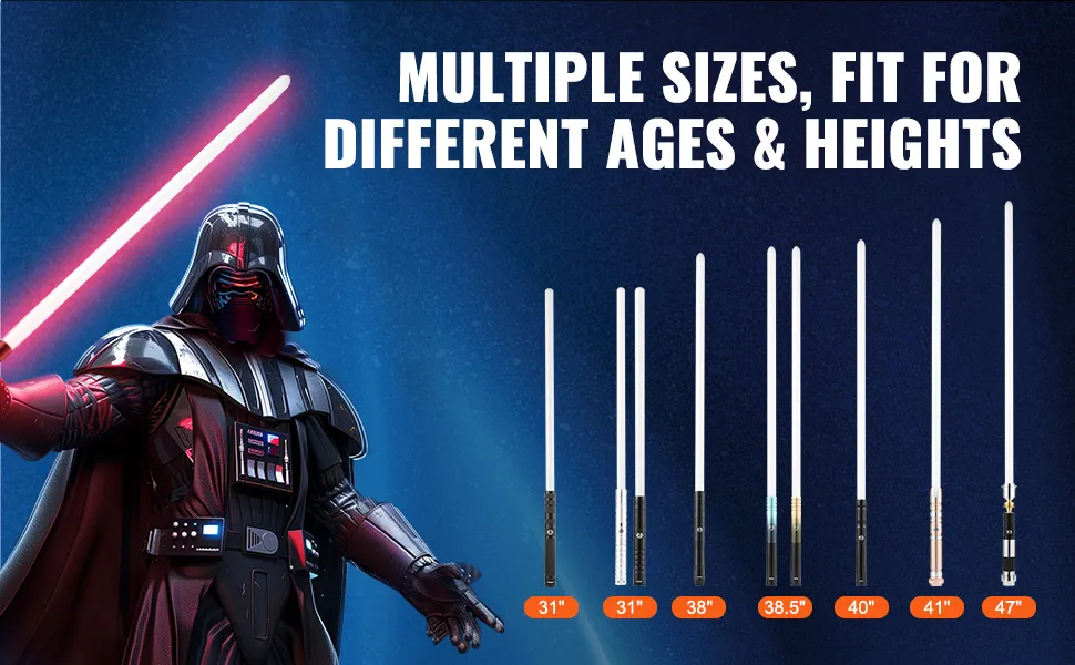 Miecz świetlny o długości 97 cm: Ten akumulatorowy miecz świetlny ma długość 38 cali (97 cm) i rękojeść o długości 10,63 cala (27 cm). Jest on łatwy do trzymania zarówno dla dorosłych, jak i dla dzieci, dzięki czemu idealnie nadaje się do interakcji rodzic-dziecko w każdej chwili.