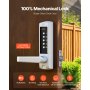 Mechaniczny zamek szyfrowy VEVOR z jednostronną klawiaturą (kod 5-cyfrowy), bezkluczykowy zamek do drzwi z klamką i automatycznym ryglowaniem, do drzwi wejściowych, bram ogrodowych, garaży, do użytku zewnętrznego, srebrny