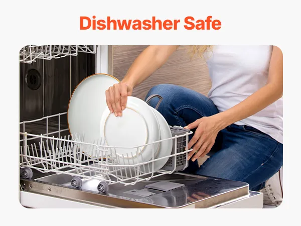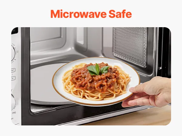 Możliwość mycia w zmywarce i używania w kuchence mikrofalowej: Każdy odporny na zarysowania talerz i miskę można myć w zmywarce i podgrzewać w kuchence mikrofalowej, co ułatwia pracę w kuchni i uwalnia ręce.