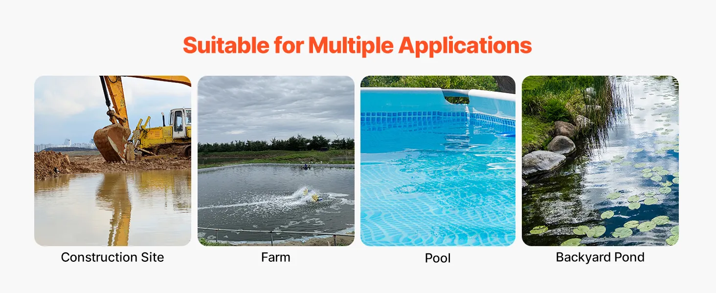 Wszechstronność: Dzięki przewodowi zasilającemu o długości 10 m, umożliwiającemu pracę na duże odległości, ta pompa zanurzeniowa idealnie nadaje się do osuszania basenów, stawów i fontann, a także do pompowania ścieków z gospodarstw rolnych, placów budowy i innych miejsc.