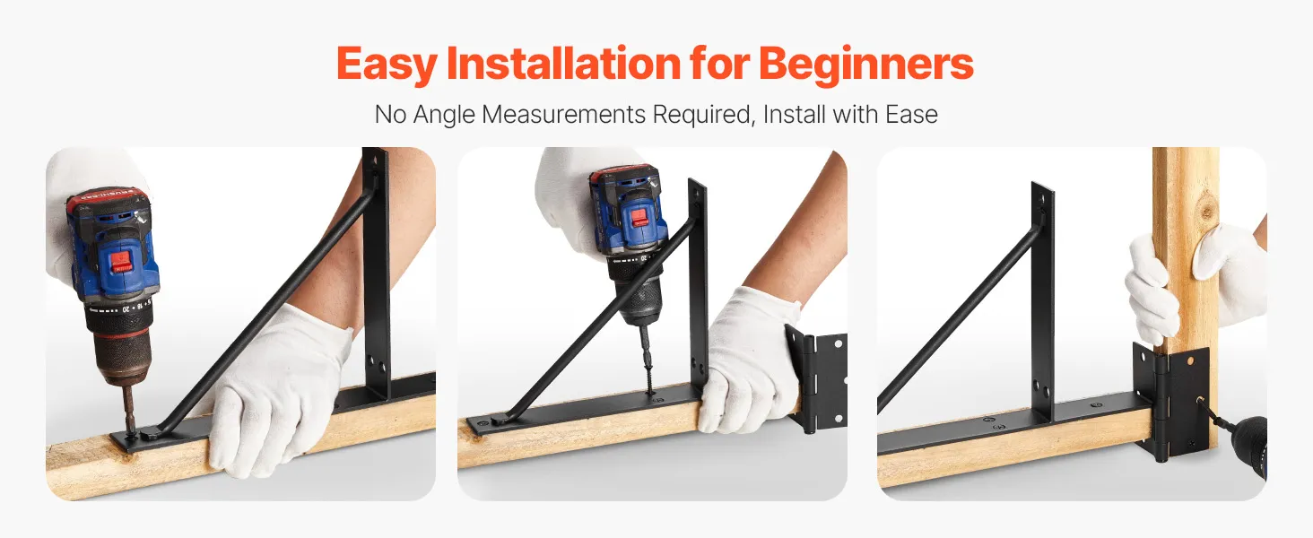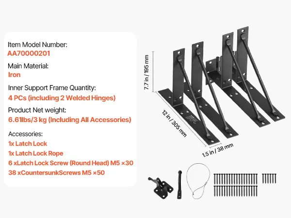 Wspornik narożny bramy VEVOR, zestaw ramy bramy zapobiegający opadaniu, wspornik ramy bramy z żelaza z zamkiem zasuwkowym i linką zamka zasuwkowego, do drzwi do szop, bram wjazdowych i bram do stodół, czarny