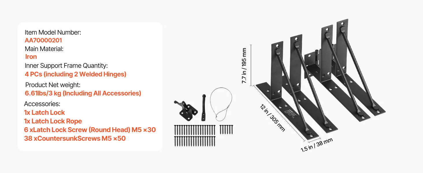 Szeroka kompatybilność: Nadaje się do wielu typów drzwi, w tym drzwi do szop, bram podjazdowych, bram dla bydła, okien drewnianych, drzwi tarasowych, bram basenowych, drzwi do stodoły i drzwi magazynowych. Ten zestaw osprzętu do ramy bramy pasuje do wszystkich rozmiarów drzwi od 2 x 4 cale (5,08 x 10,16 cm) i większych, oferując wszechstronne możliwości instalacji