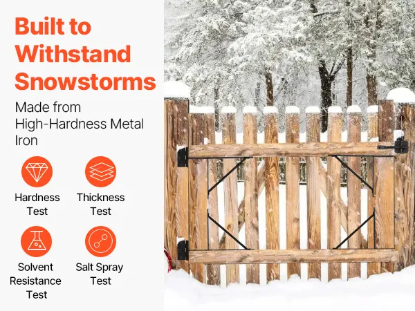 Materiał odporny na korozję i rdzę: Wykonany z wytrzymałego metalu żelaznego zestaw osprzętu do bramy jest niezwykle trwały, odporny na rdzę i warunki atmosferyczne. Jest on zbudowany tak, aby wytrzymać działanie warunków zewnętrznych i z łatwością wytrzyma wiatr, deszcz i śnieg podczas długotrwałego użytkowania.