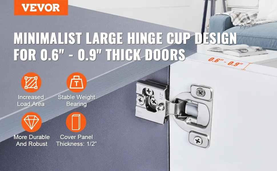 Minimalistyczna konstrukcja z dużą puszką zawiasu skutecznie zwiększa powierzchnię styku i zapewnia stabilność nośną. Nawet przy grubości panelu drzwi od 1,5 do 2,3 cm (0,6–0,9 cala), stabilność i trwałość są zagwarantowane, umożliwiając długotrwałe użytkowanie bez odkształceń.