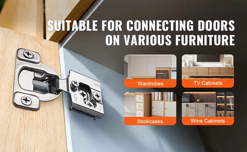 Szerokie zastosowanie: Nasze zawiasy meblowe są uniwersalne i pasują do wszystkich popularnych konstrukcji ram drzwi szafek. Łatwo wpasowują się w różne style aranżacji wnętrz.