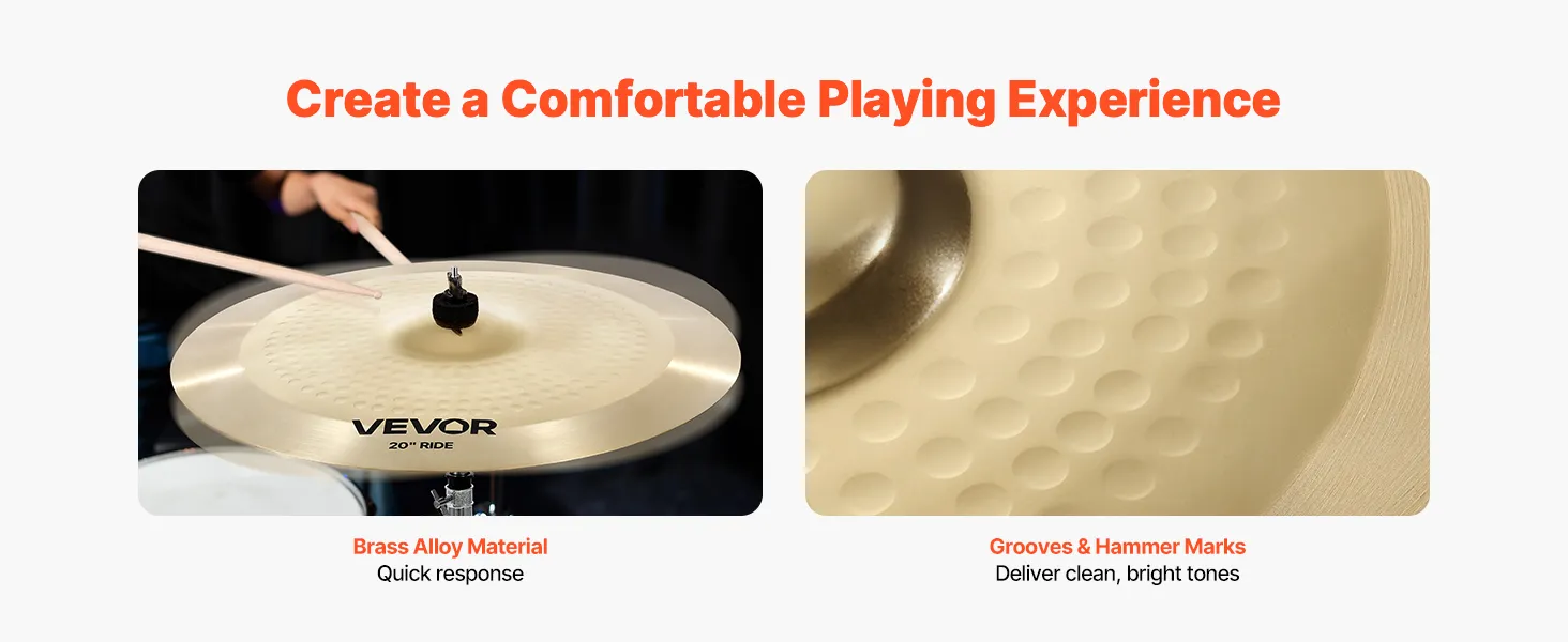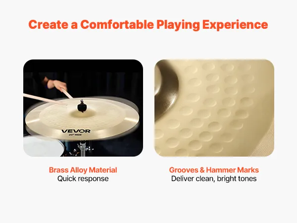 Jasny, czysty dźwięk: Nasz zestaw aluminiowych talerzy perkusyjnych charakteryzuje się eleganckim rowkiem i wzorem młoteczków, co zapewnia jasne, czyste brzmienie. Polerowane talerze wyglądają równie dobrze, jak brzmią, zapewniając czystą, żywą muzykę.