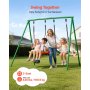 Huśtawka ogrodowa VEVOR z metalową podstawą w kształcie litery A, podwójna huśtawka (1 huśtawka talerzykowa i 1 huśtawka pasowa), nośność do 199,6 kg, zestaw huśtawek zewnętrznych, wzmocniony spiralnymi kotwami gruntowymi