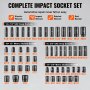 Zestaw nasadek udarowych VEVOR 3/8 i 1/2 cala, 59-częściowy zestaw nasadek SAE 5/16 do 1-1/4 cala i metrycznych 6-32 mm, 6-kątny, ze stali stopowej Cr-Mo do napraw samochodowych