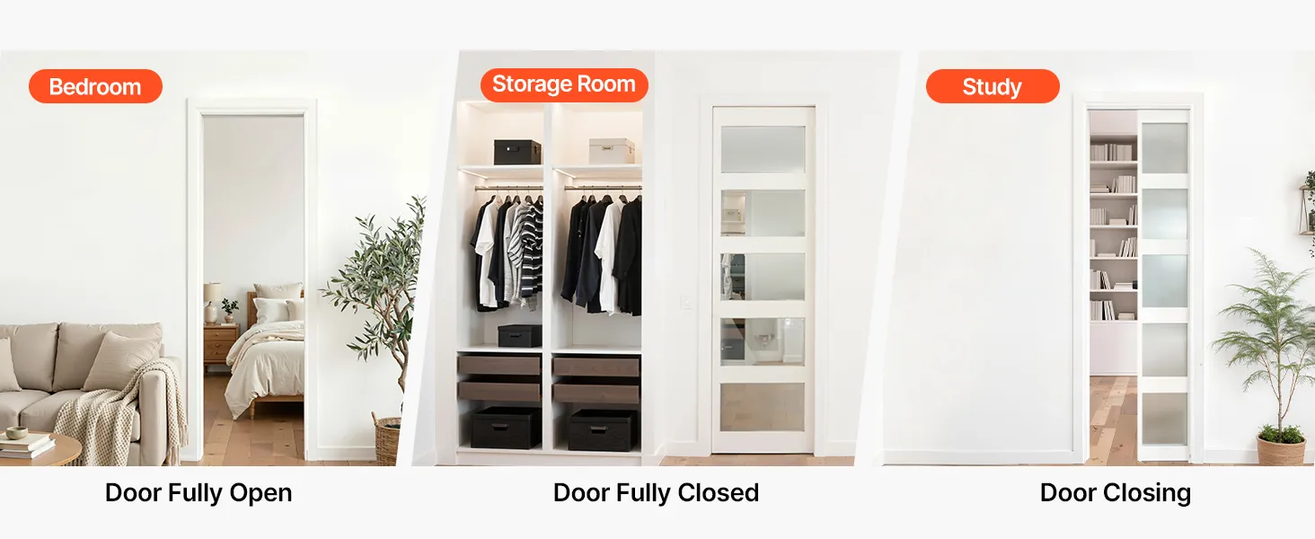 Ten system drzwi przesuwnych zapewnia płynną i stabilną pracę drzwi, niezawodne sterowanie drzwiami i jest wyjątkowo trwały. To idealny wybór do pomieszczeń mieszkalnych, w których liczy się cicha i płynna praca.