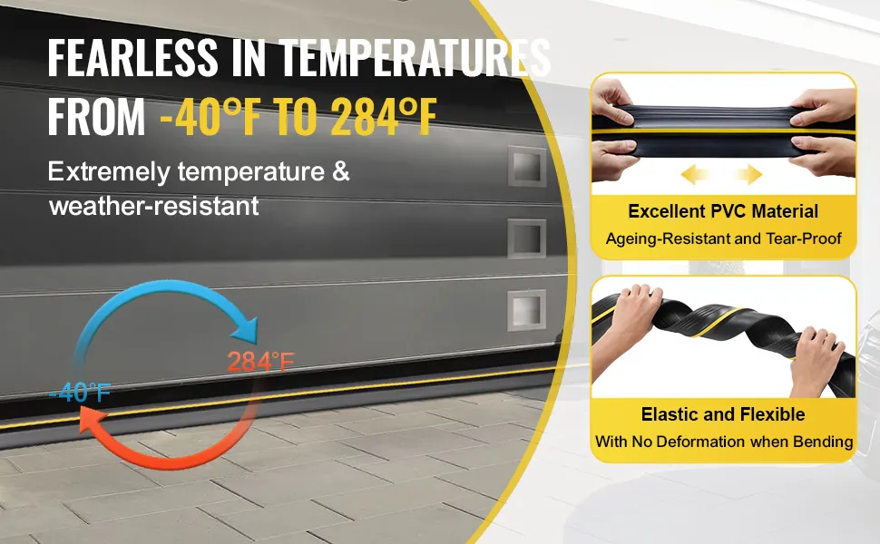 Bezpieczna konstrukcja z żółtą końcówką: Żółty pasek ostrzegawczy poprawia widoczność, umożliwiając bezpieczne wchodzenie i wychodzenie. Antypoślizgowe rowki zmniejszają ryzyko poślizgnięcia, a ząbkowana podstawa zapewnia doskonałą przyczepność między uszczelką progu bramy garażowej a uszczelkami, bramą garażową lub podłogą.