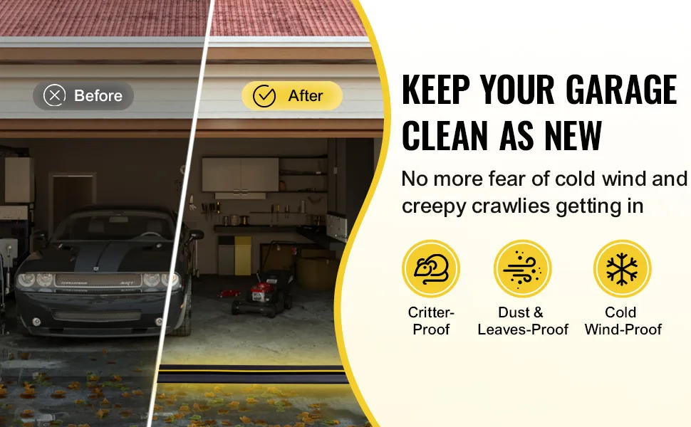 Utrzymuj swój garaż suchy i czysty: Nasza uszczelka progowa do drzwi garażowych skutecznie blokuje wodę, deszcz, śnieg, kurz i liście, dzięki czemu Twój garaż pozostaje czysty i wygląda lepiej.