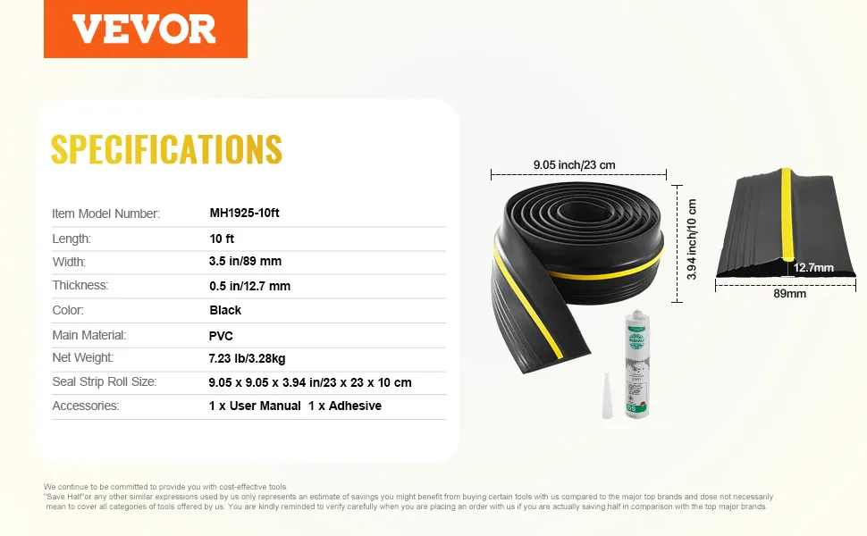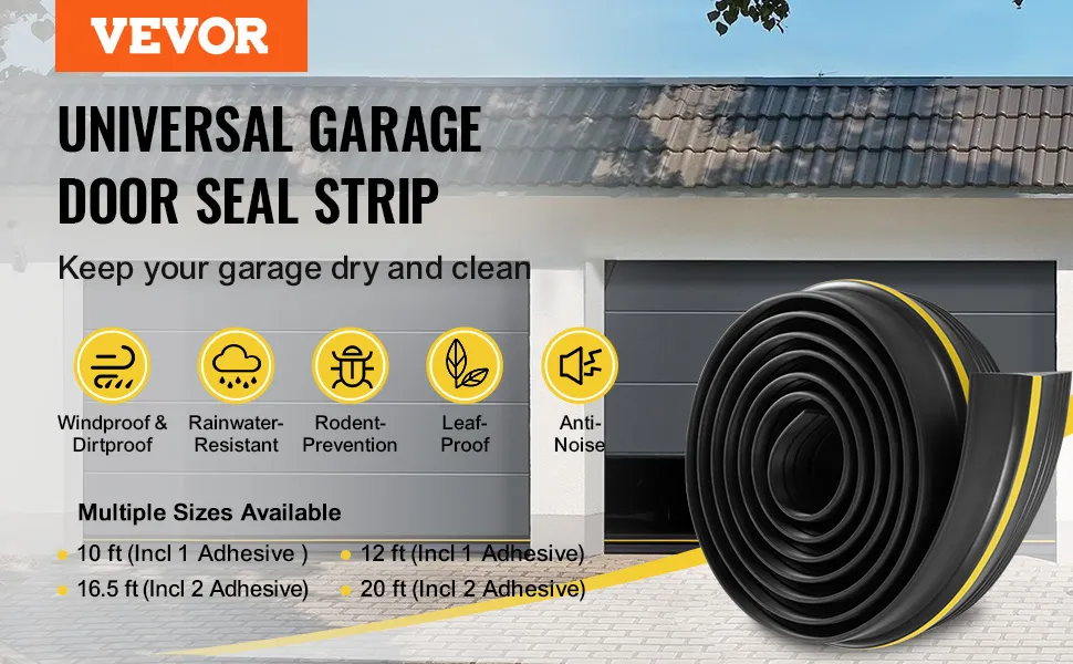VEVOR Uszczelka progowa do drzwi garażowych 3,05 m Uniwersalna uszczelka dolna do drzwi garażowych z klejem, odporna na warunki atmosferyczne, do ulepszonego zamiennika dolnej części drzwi garażowych z grubego PVC