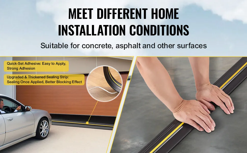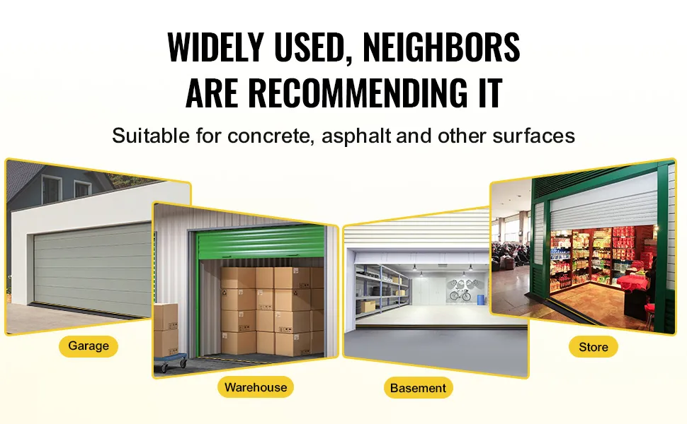 Ta taśma progowa do bram garażowych nadaje się do powierzchni betonowych, asfaltowych i malowanych, spełniając potrzeby różnych gospodarstw domowych. Klej zapewnia łatwy montaż i dobrą przyczepność.