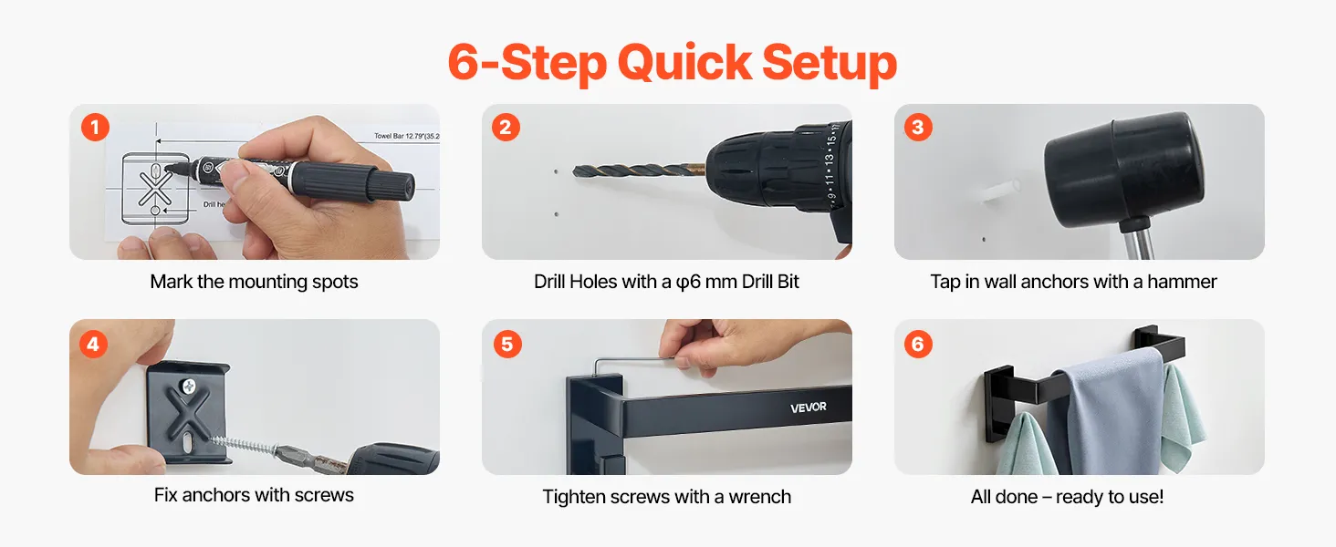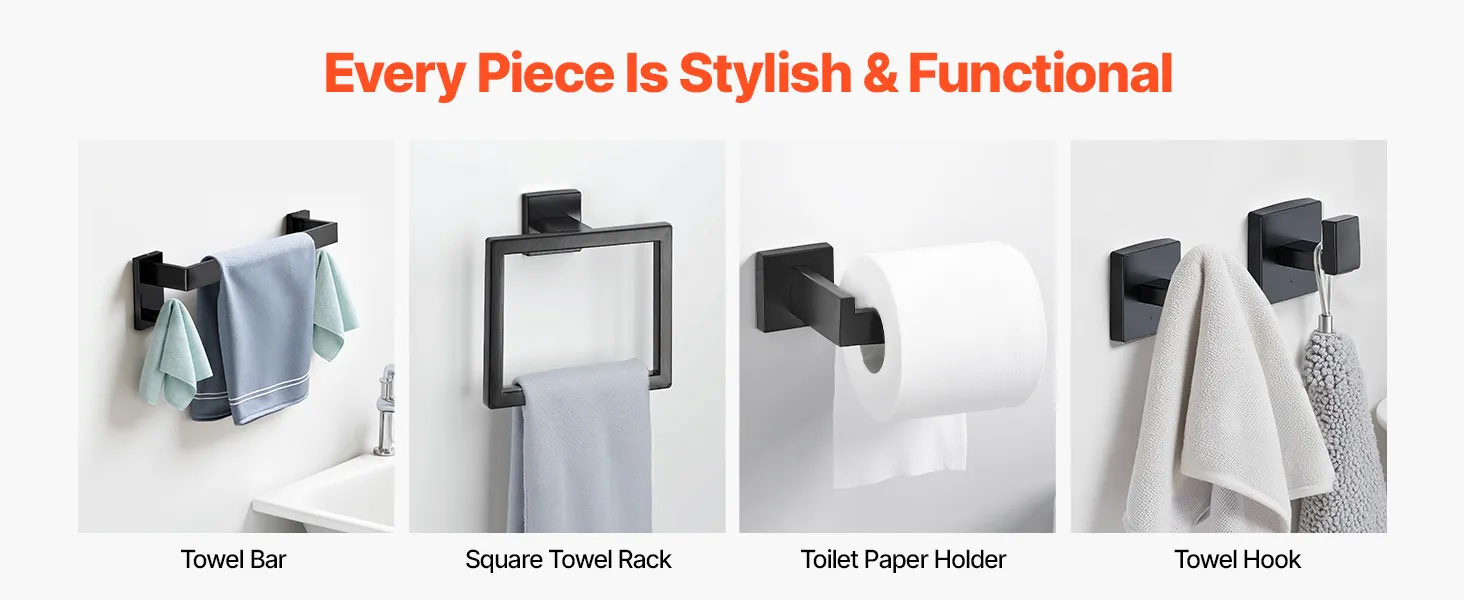 Dzięki temu wysokiej jakości zestawowi wieszaków na ręczniki z łatwością uporządkujesz i powiesisz ręczniki oraz inne niezbędne rzeczy, zapewniając schludny i uporządkowany wygląd łazienki. Koniec z niepotrzebnymi zakupami – praktyczne i niedrogie!