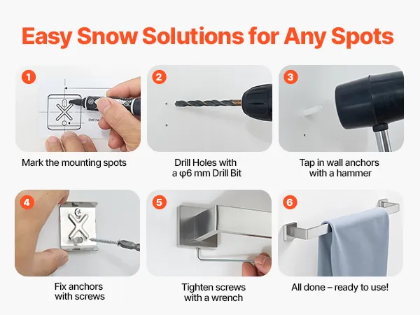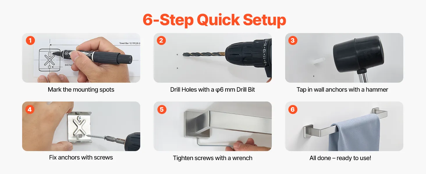 Nasz zestaw wieszaków na ręczniki wykonany jest z wysokiej jakości stali nierdzewnej, odpornej na zużycie, zarysowania i rdzę — idealnej do wilgotnych łazienek i trwałej konstrukcji.
