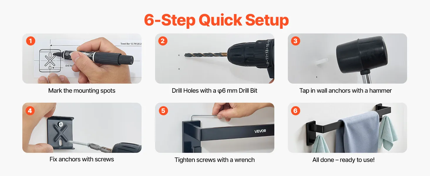 Dzięki temu wysokiej jakości zestawowi wieszaków na ręczniki z łatwością uporządkujesz i powiesisz ręczniki oraz inne niezbędne rzeczy, zapewniając schludny i uporządkowany wygląd łazienki. Koniec z niepotrzebnymi zakupami – praktyczne i niedrogie!