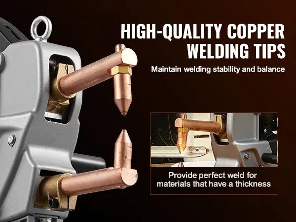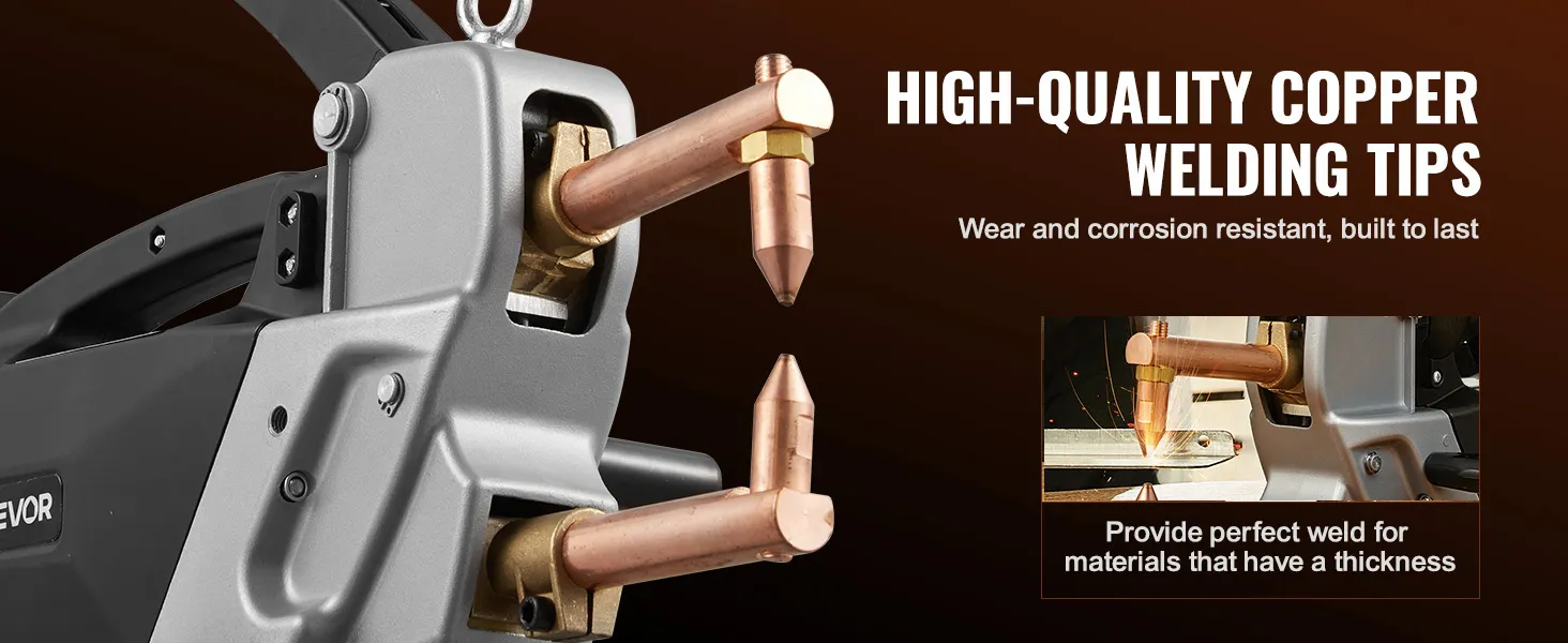 Wysoka wydajność: Ta przenośna zgrzewarka punktowa jest przeznaczona do blach stalowych o grubości do 2 mm + 2 mm (np. ze stali węglowej) i zapewnia mocne, niezawodne spoiny w różnych zastosowaniach związanych z obróbką metali. (Nie nadaje się do aluminium i stali nierdzewnej)