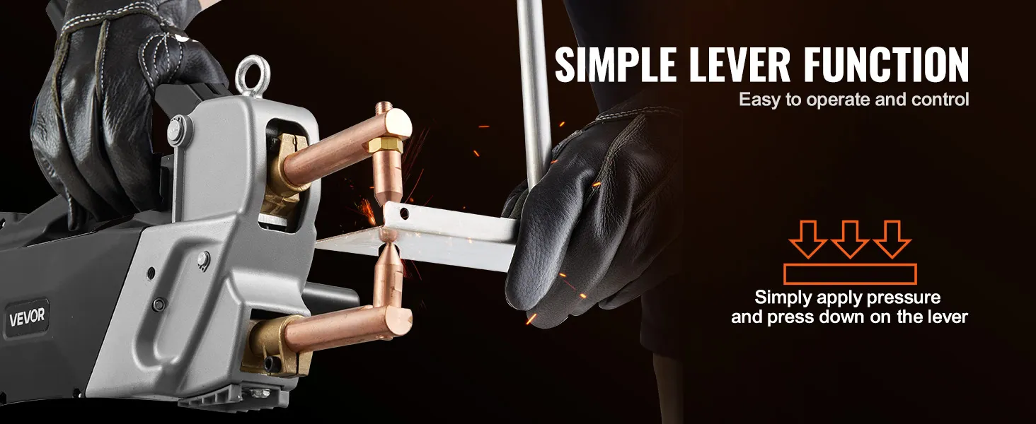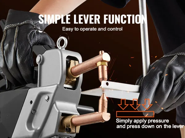 Dzięki prostemu mechanizmowi dźwigni obsługa jest dziecinnie prosta. Wystarczy nacisnąć dźwignię i nacisnąć dźwignię sterującą, aby bez wysiłku ukończyć spawanie.