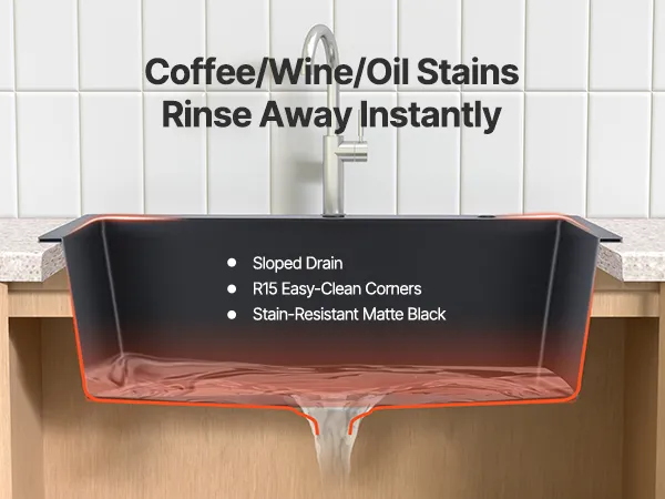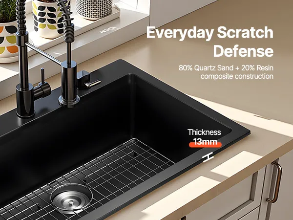 O: Tak! Powierzchnia kompozytowa, wykonana w 80% z piasku kwarcowego i w 20% z żywicy syntetycznej, jest nieporowata, dzięki czemu plamy i zacieki nie będą się na niej osadzać. Wystarczy przetrzeć wilgotną ściereczką. Matowa, czarna powierzchnia maskuje smugi, ułatwiając konserwację.