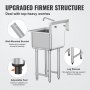 Ulepsz przepływ pracy w kuchni dzięki łatwemu przygotowywaniu i czyszczeniu za pomocą tego zlewu ze stali nierdzewnej. Jego solidna konstrukcja sprawia, że jest trwały i niezawodny w zastosowaniach komercyjnych. Posiada regulowane nogi i stopy z rękawami na nogi dla wsparcia. Sitko ze stali nierdzewnej zapewnia nieprzerwany odpływ. Zapobiega zatykaniu się rur. Można go zamontować na ścianie i używać w pralni, stołówce lub garażu. Gładka powierzchnia ułatwia czyszczenie, a certyfikat NSF spełnia standardy higieny.