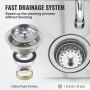 Ponadto ten komercyjny zlew gospodarczy ma zespół odpływowy. Ten zestaw jest przeznaczony do długotrwałego użytkowania, zapewniając niezawodne rozwiązanie odprowadzania wody. Jest również wyposażony w wysoki backsplash, który biegnie wzdłuż tylnej krawędzi.