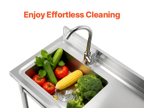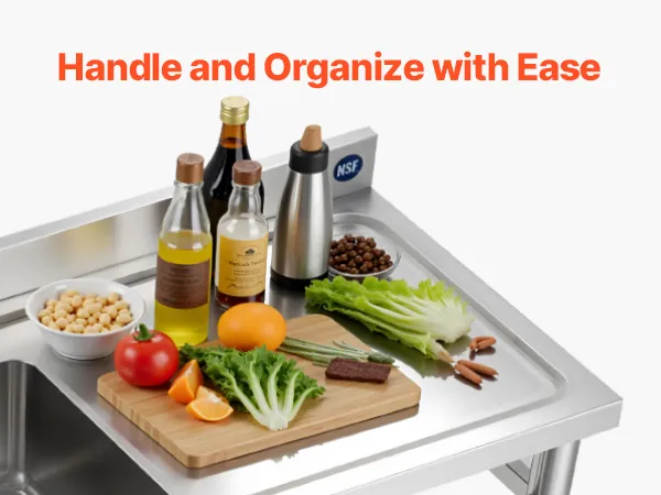 Konstrukcja typu „wszystko w jednym” łączy w sobie blat roboczy, zlew i regulowaną przestrzeń do przechowywania, dzięki czemu mycie i porządkowanie staje się bezproblemowe. Przestronny zlew nadaje się do różnorodnych zadań związanych ze sprzątaniem, a regulowane dolne półki oferują elastyczne miejsce do przechowywania różnych przedmiotów, dostosowując się do różnych sytuacji.