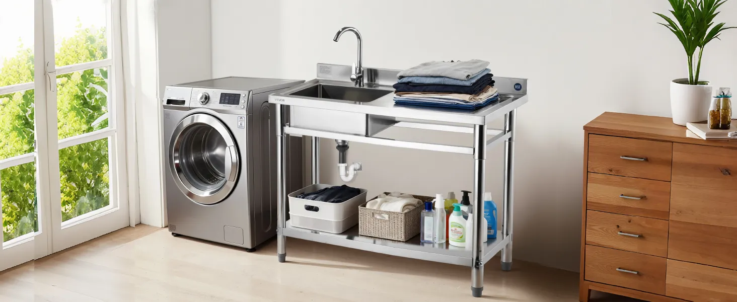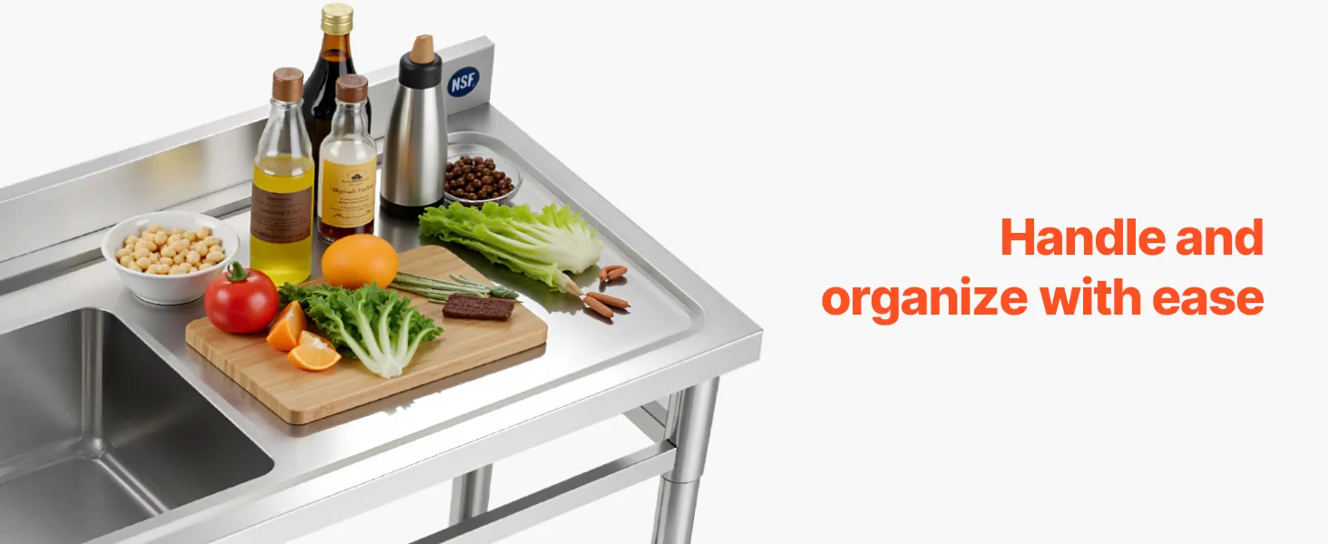 Wielofunkcyjna konstrukcja 3 w 1: łączy dużą powierzchnię roboczą, głęboki zlew i regulowaną dolną półkę, zapewniając efektywne mycie, organizację i przechowywanie. Nasz zlew zapewnia dużo miejsca do sprzątania; wysokość półki można regulować na 3 poziomach.